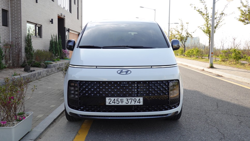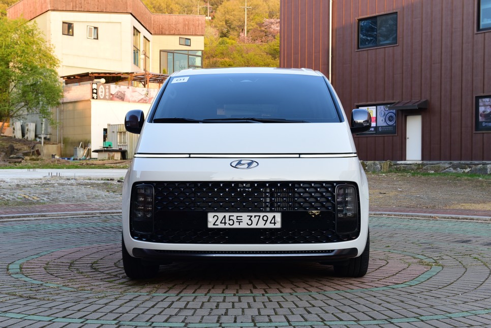 스타리아 라운지 7인승 인스퍼레이션 트림입니다. 전면부 디자인은 게임 캐릭터 같기도 하고 로봇의 얼굴을 보는 듯한 느낌입니다.(파격적이죠!)