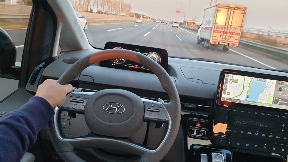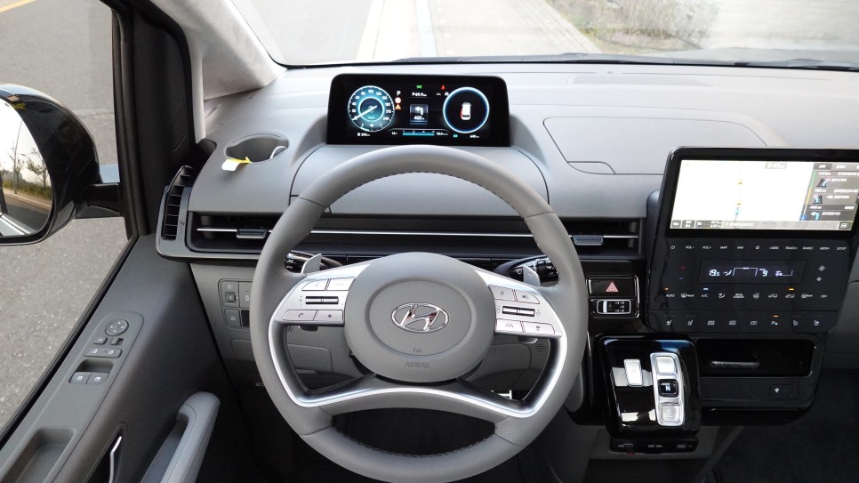 스티어링 각도가 살짝 승합차스럽긴 한데 바로 위에 캔버스 같은 10.25인치 디지털 클러스터는 신차라는 느낌을 강하게 전해줍니다.