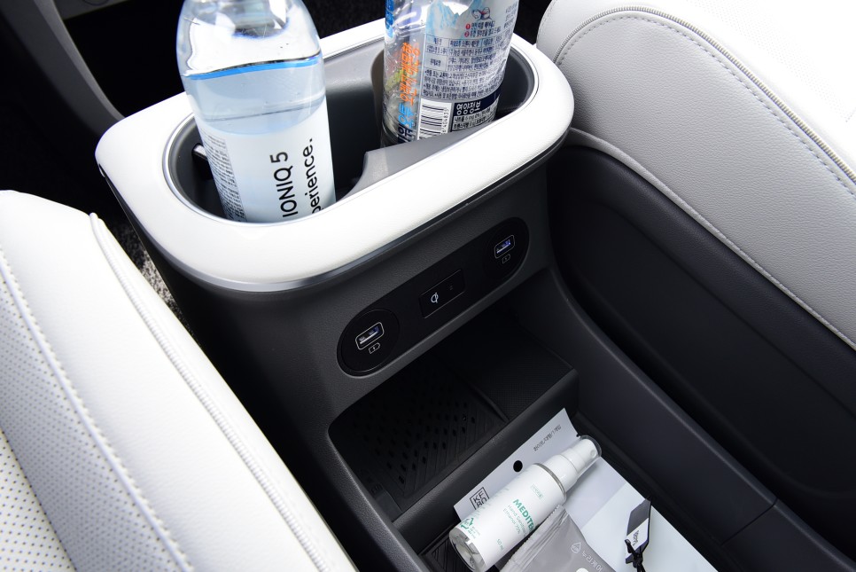 약간의 수납공간과 USB 충전 단자 2개가 마련되어 있습니다.