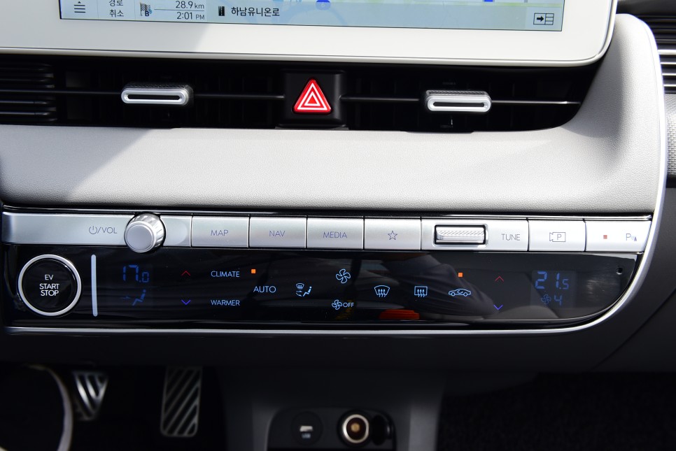 공조장치는 크기나 위치 모두 적절하고 인포테인먼트와 공조장치 컨트롤이 순차적으로 자리하고 있습니다. 위치나 버튼 배열, 조작감 모두 좋은 편입니다.