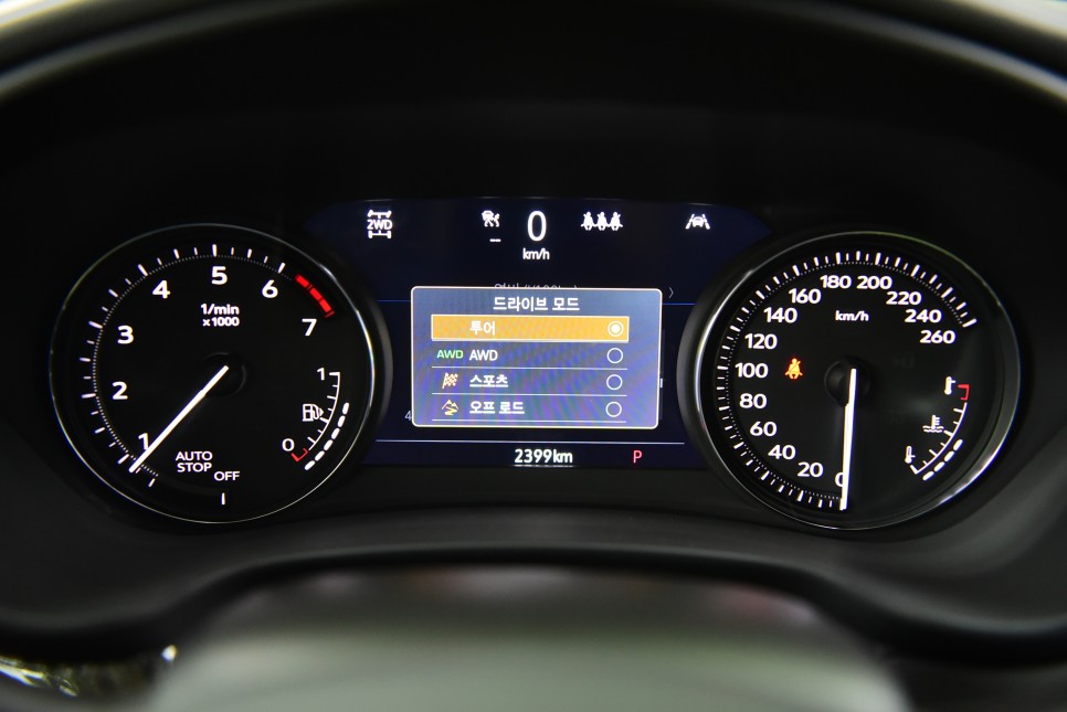 드라이브 모드는 3가지(투어, 스포츠, 스노우/아이스), 컵홀더 2개는 오픈 타입입니다.