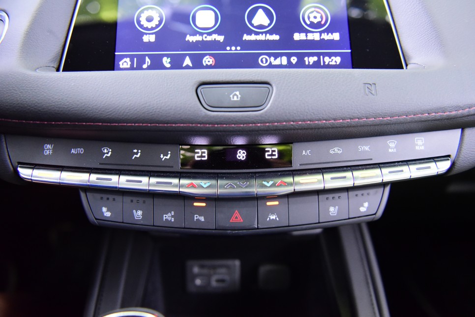 공조장치와 각종 기능 스위치는 수평으로 깔끔하게 정리했습니다. 열선/통풍은 각각 3단이고요.