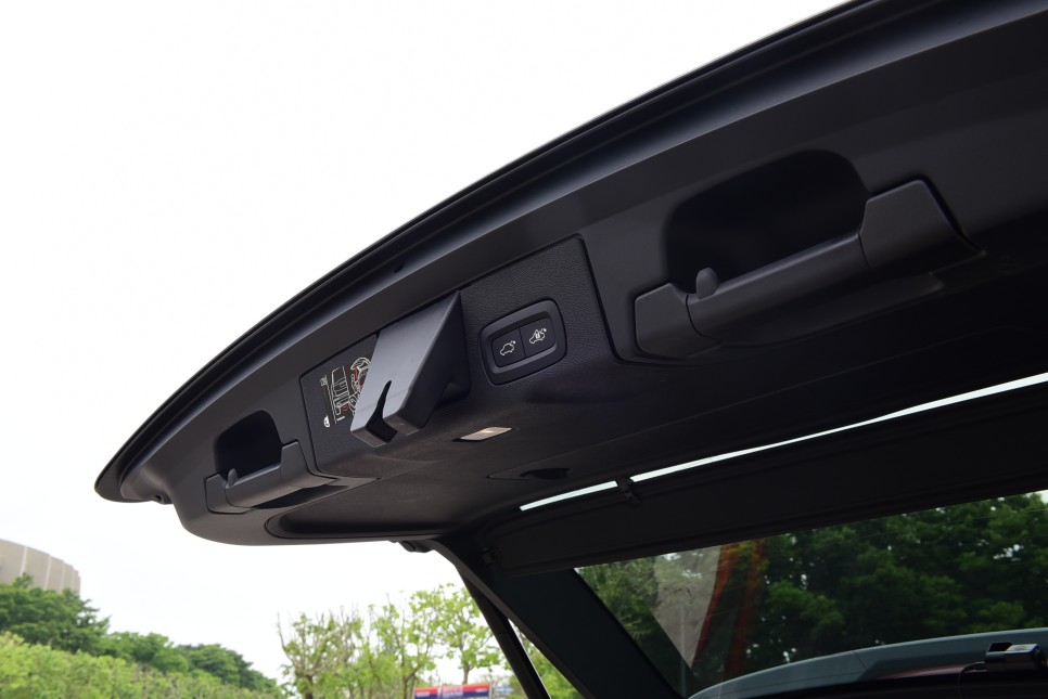 전동 테일게이트는 버튼으로 작동하고 양쪽에 손잡이도 마련해뒀네요.
