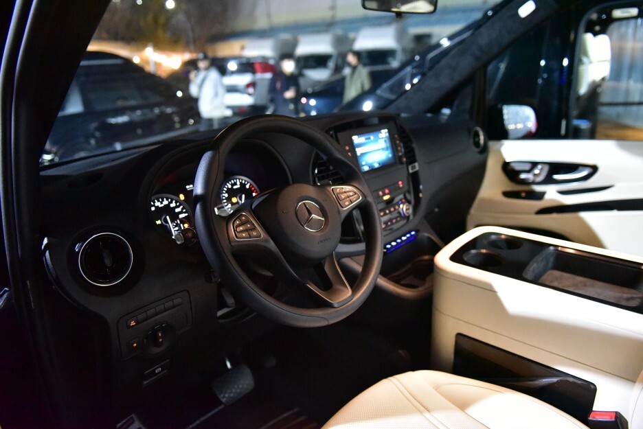화려한 후석에 비해서 앞쪽은 대중적인 벤츠 승합차량 분위기 그대로입니다.