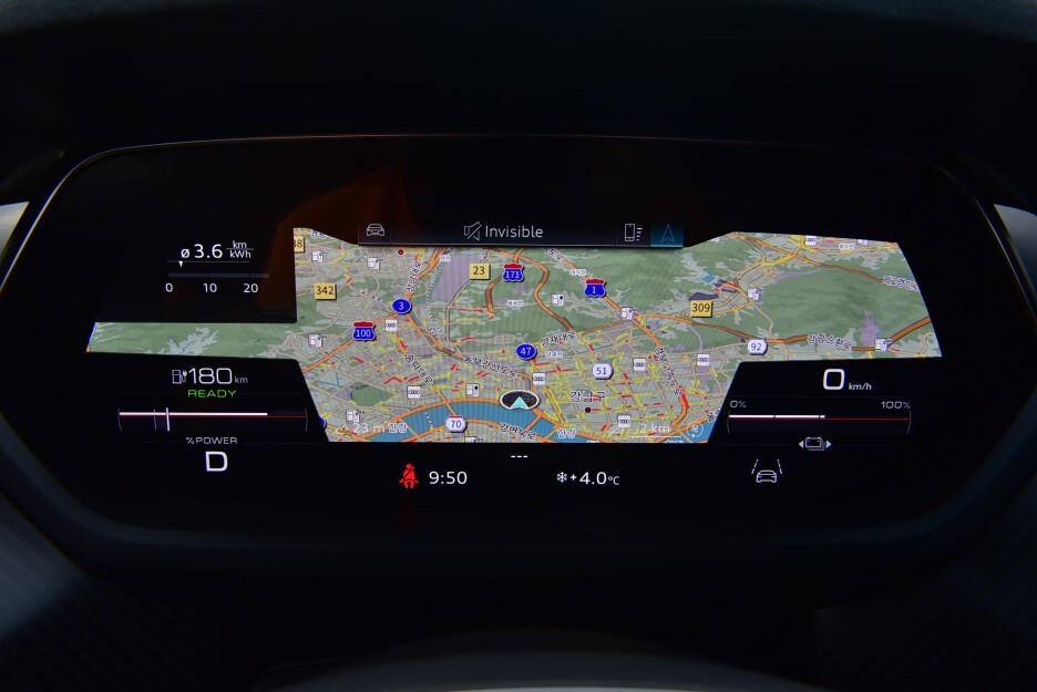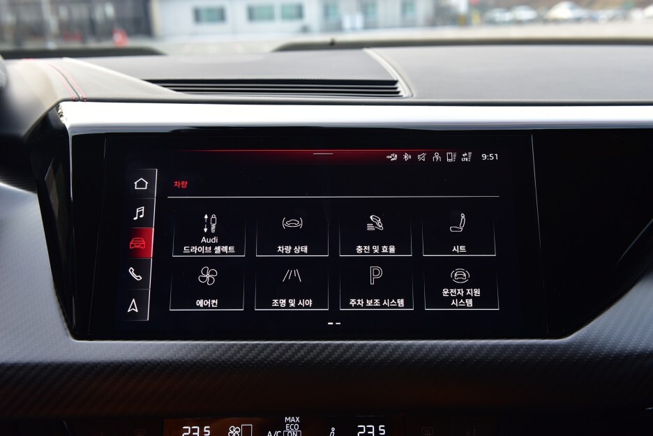 비대칭 콕핏 구조 역시 아우디 차량들의 특징이죠. 전기차라고 좀 더 특별할 줄 알았는데 아쉽네요....
