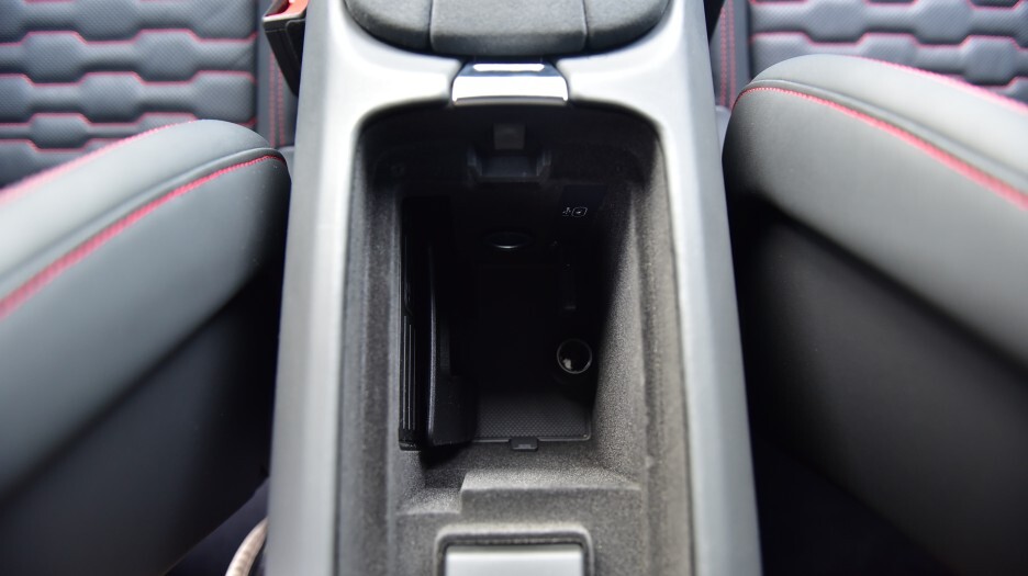 컵홀더는 오픈 타입으로 2개가 마련되어 있습니다. 암레스트 아래쪽에 수납은 넓지 않지만 깊이는 좀 있는 편이라 불편하진 않았습니다.