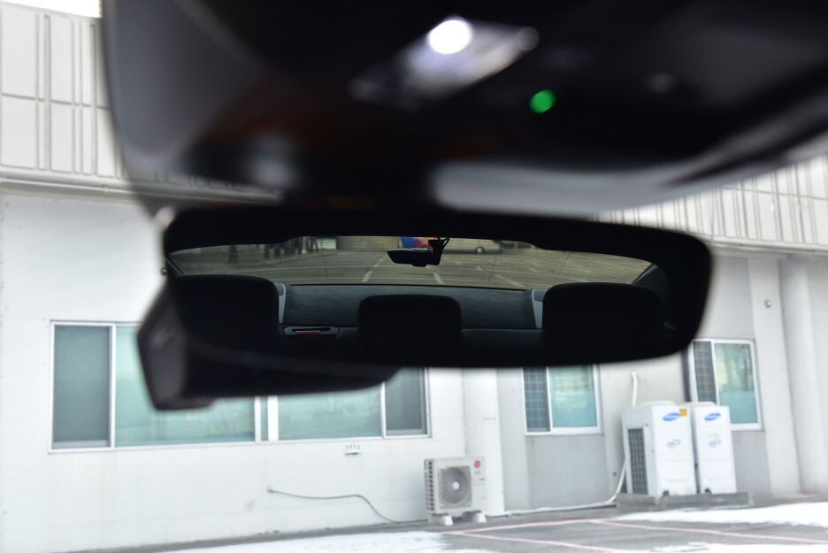 거울 크기는 적절하나 쿠페형 디자인 덕분인지 후방 시야가 시원한 편은 아닙니다.