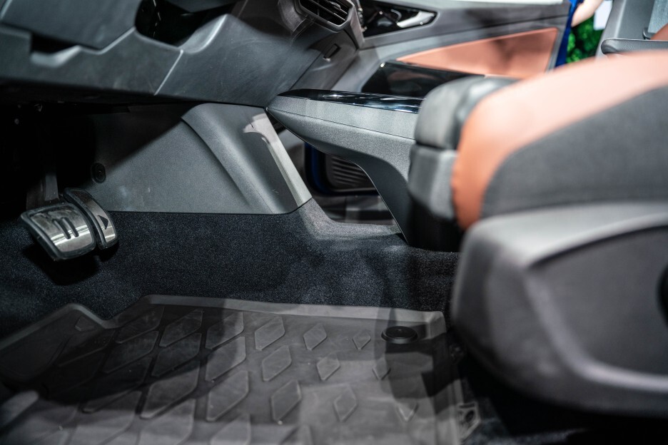 센터터널이 높은 편이고 덕분에 가운데 별도의 수납공간을 넉넉하게 확보하고 있습니다. 페달은 일반형으로 금속과 고무가 혼합되어 있구요.