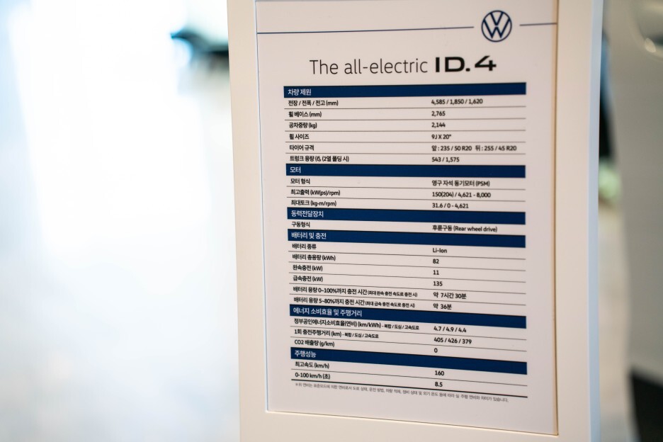ID.4는 일반 및 동력계 부품에 대해 3년 보증(주행거리 무제한)과 함께 8년 또는 16만km(선도래 기준)의 고전압 배터리 보증을 제공합니다.