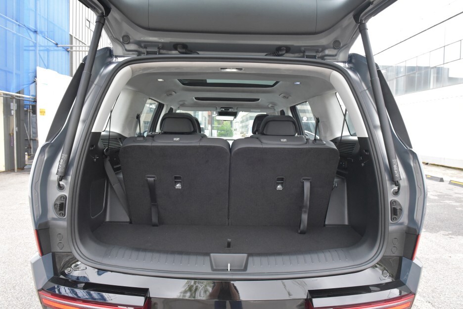 6인승 모델을 2열까지 사용할 때 공간과 3열까지 다 사용했을 때 공간입니다. 3열까지 다 사용했을 때 트렁크 공간은 그렇게 넓지 않아요.